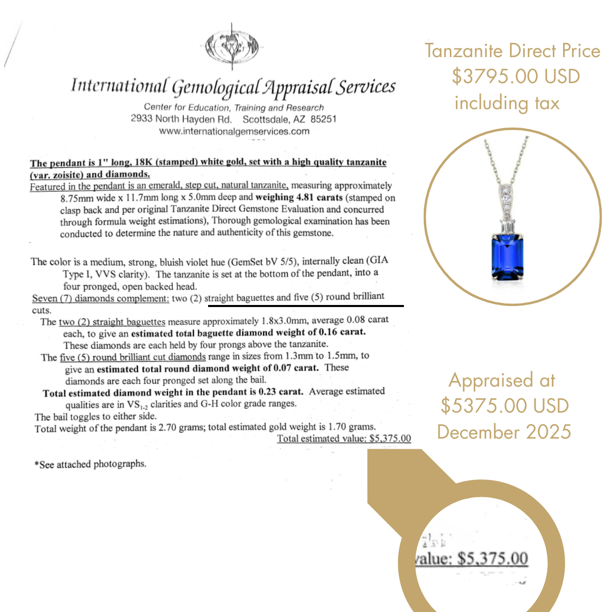 This ensures the appraisal is completely objective and gives you absolute confidence in the true retail value of your tanzanite.
