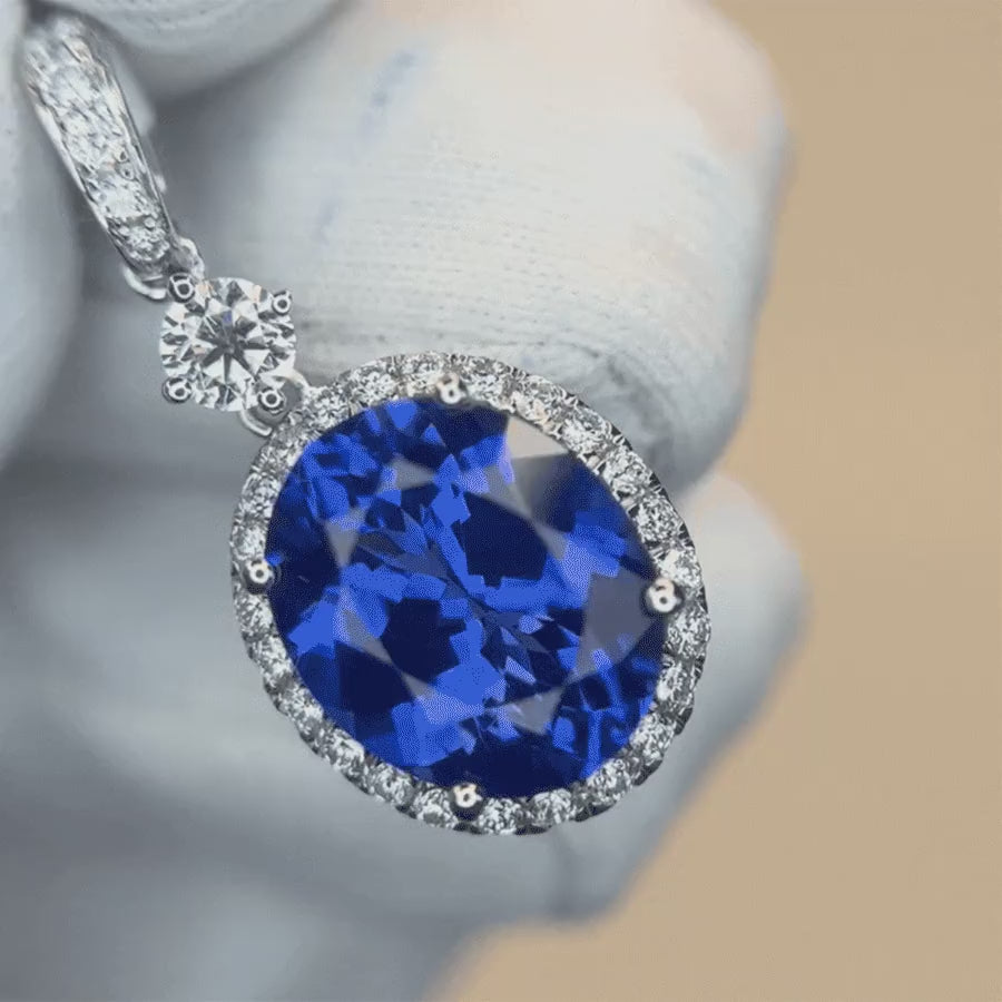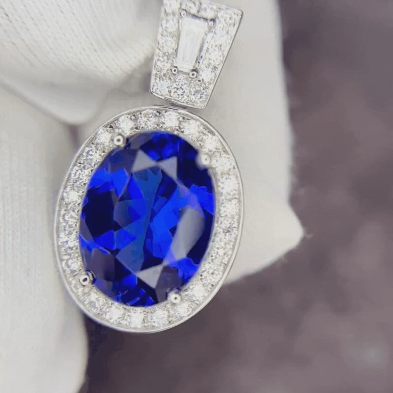 Magnificent 11.03 Ct Oval Tanzanite Pendant With Diamond Halo