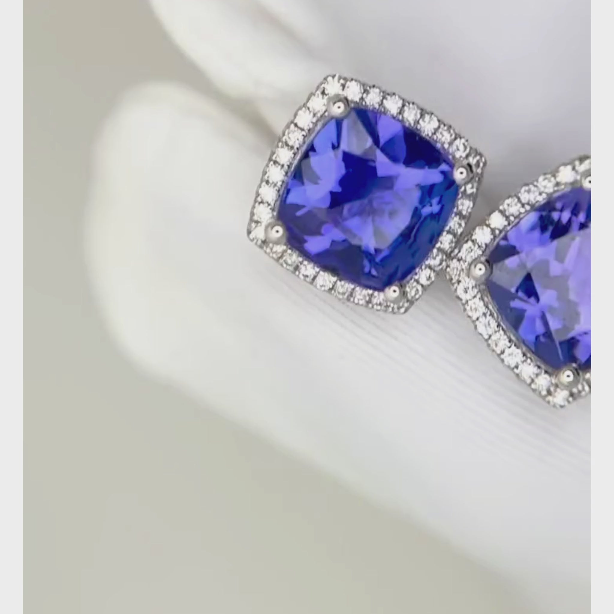 Cushion Cut & Diamond Halo Tanzanite Earrings