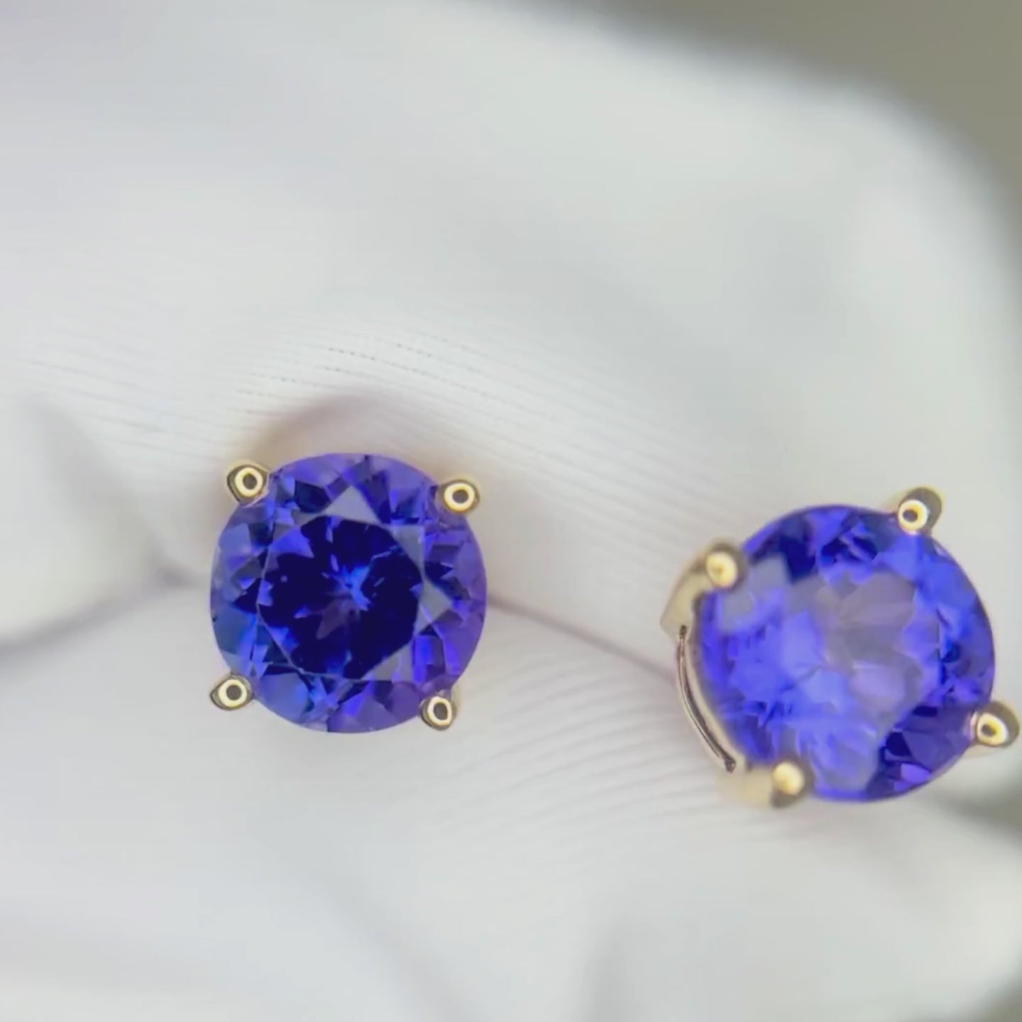 Exceptional Round Tanzanite Stud Earrings - Yellow Gold