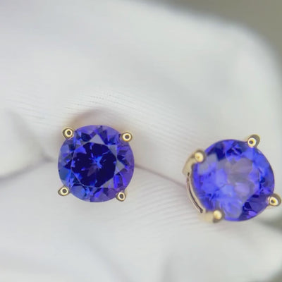 Exceptional Round Tanzanite Stud Earrings - Yellow Gold Sale price$2,246.00 USD