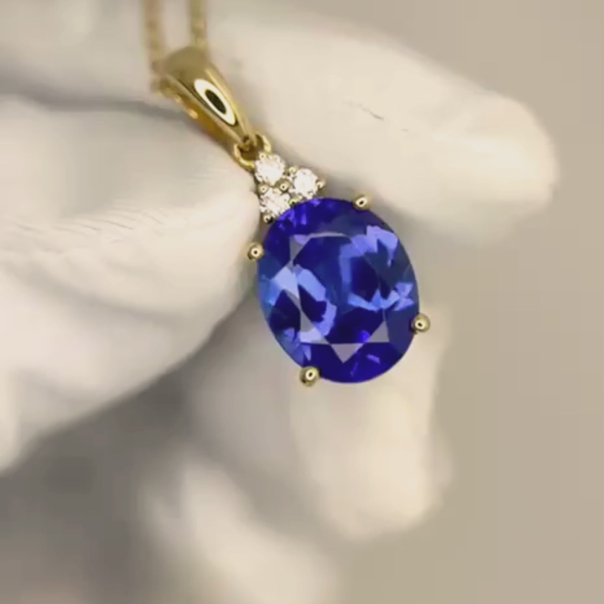 Oval Tanzanite & Diamond Pendant -  Yellow Gold