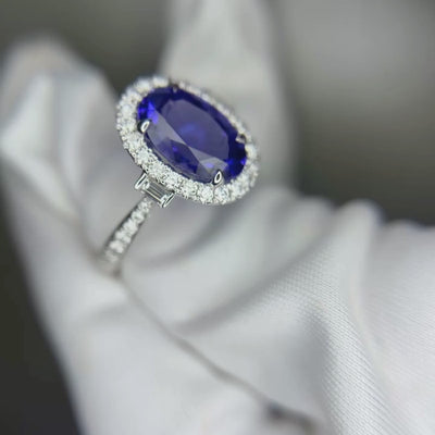 3.40 Ct Oval Tanzanite Ring with Baguette Diamonds & Halo Sale price$3,800.00 USD