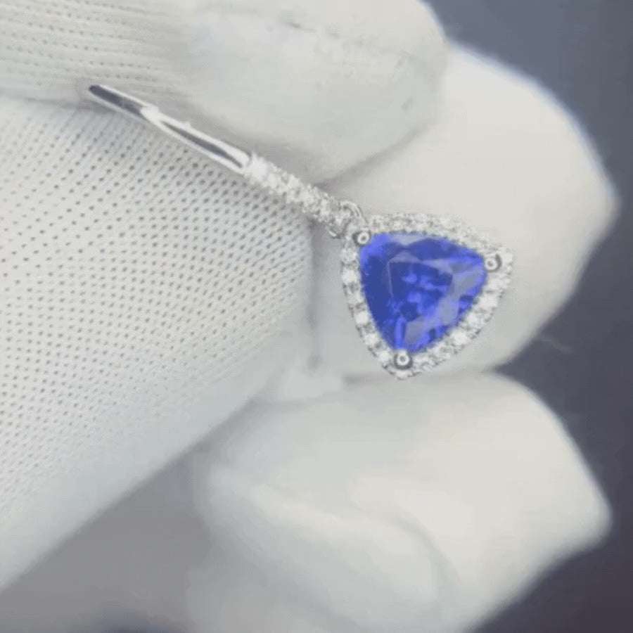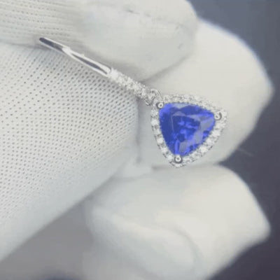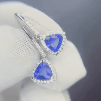 Trillion Cut Tanzanite & Diamond Halo Dangle Earrings Sale price$1,100.00 USD Regular price$1,500.00 USD