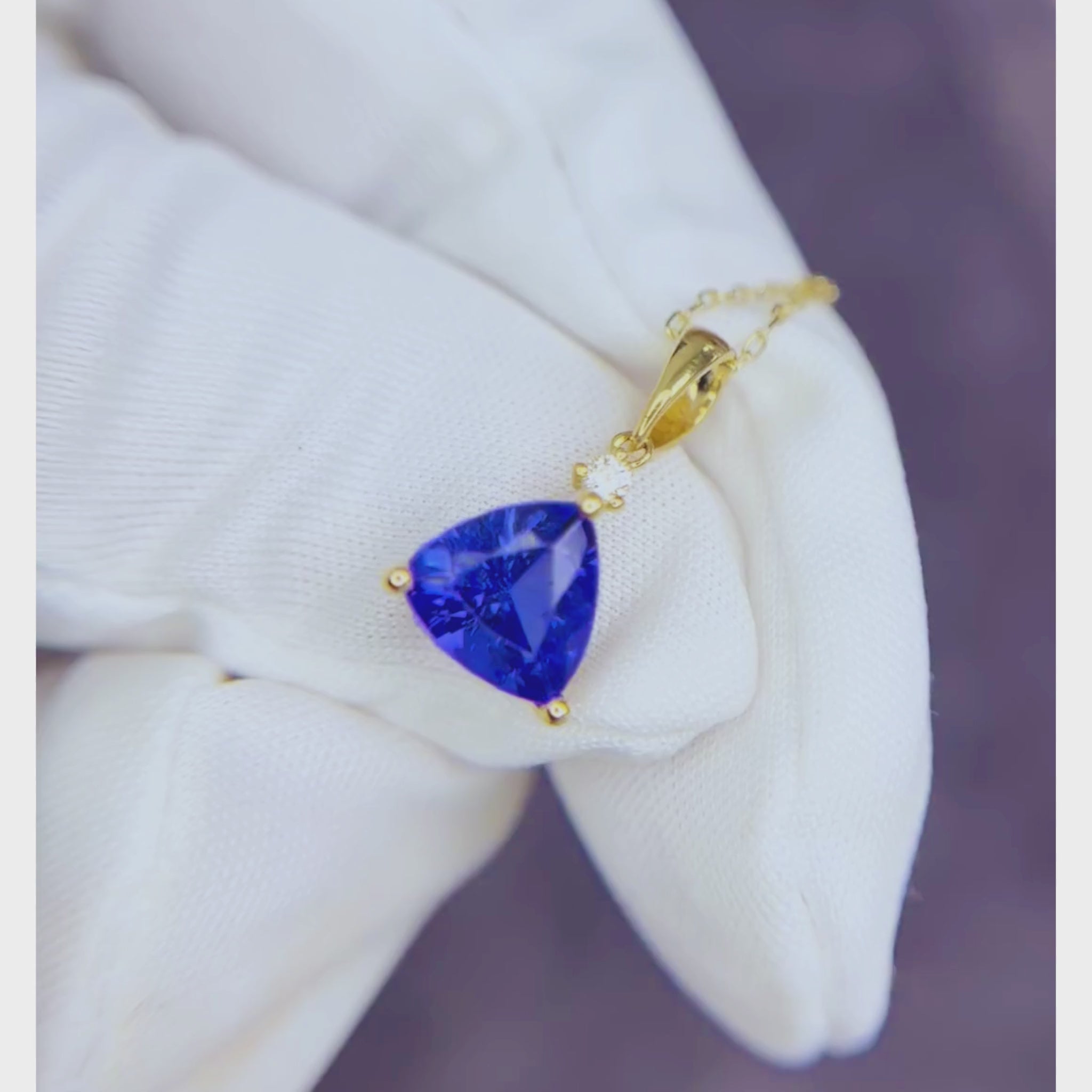 Trillion Cut Tanzanite & Diamond Pendant in Yellow