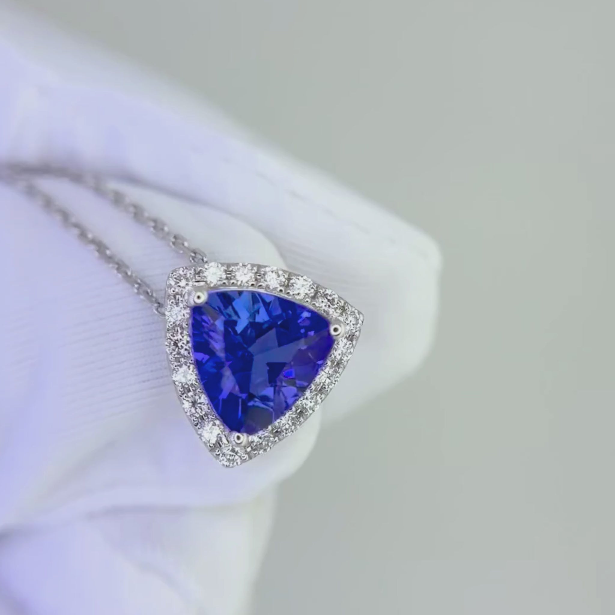 Trillion-Cut Tanzanite and Diamond Halo Pendant – 1.81 Carats Sale price$1,800.00 USD Regular price$2,300.00 USD